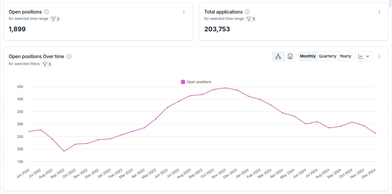Wir haben Daten von über 10 Unternehmen analysiert, um Trends bei offenen Stellen, Bewerbungen und Recruiting-Kennzahlen zu untersuchen.
