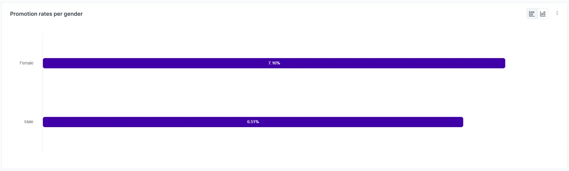 Promotion rates by sex: Proportion of employees of one gender who are promoted within a specific period of time This indicator helps the organization ensure fair career opportunities, identify inequalities in promotions and, where necessary, take organizational measures to promote fairness and inclusion.