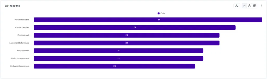 Turnover rate and reasons for quitting: The turnover rate is the percentage of employees who have left the organization within a period of time. Measurement is important to identify issues with employee satisfaction, engagement, and corporate culture, retain talent, and ensure workforce stability. It helps to manage recruitment and training costs and provides insights for effective personnel planning and budgeting. In addition, the analysis can identify systemic problems and competitive disadvantages, which enables targeted measures to improve organizational health and employee development.