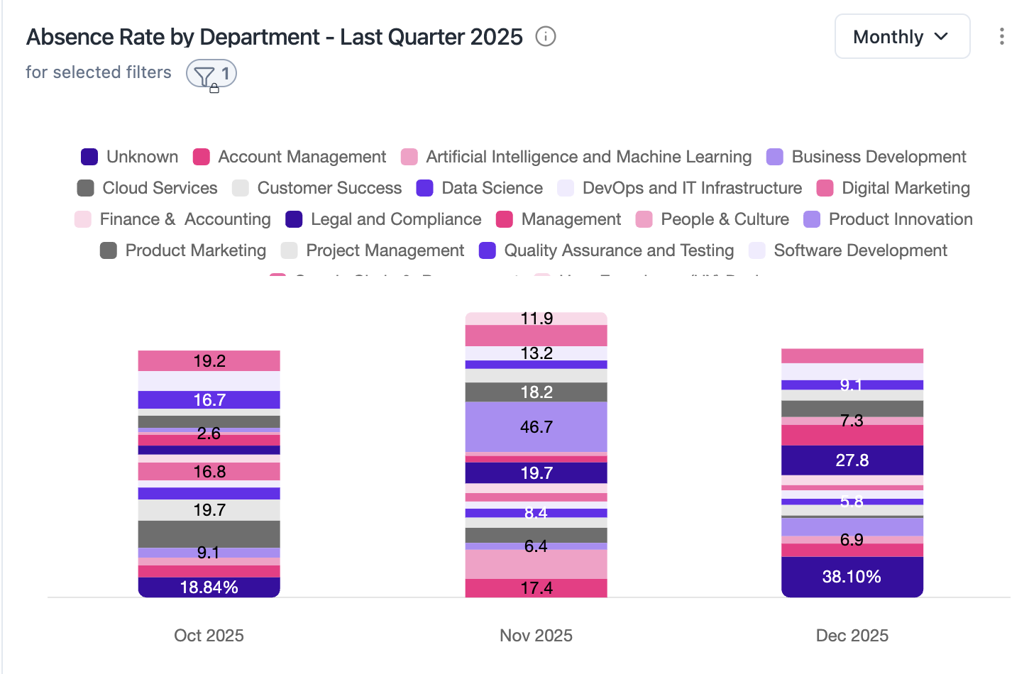 This analysis shows where action is needed in the short term to secure personnel planning for Q1 2026. It makes visible which departments, roles and contract constellations pose an increased risk of capacity bottlenecks or operational instability.
