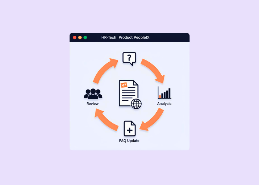 The agent recognizes recurring questions, clusters them by country/team/cause and suggests specific updates for policies & FAQs. Changes go into a review workflow with versioning — for better self-service rates and fewer compliance risks.